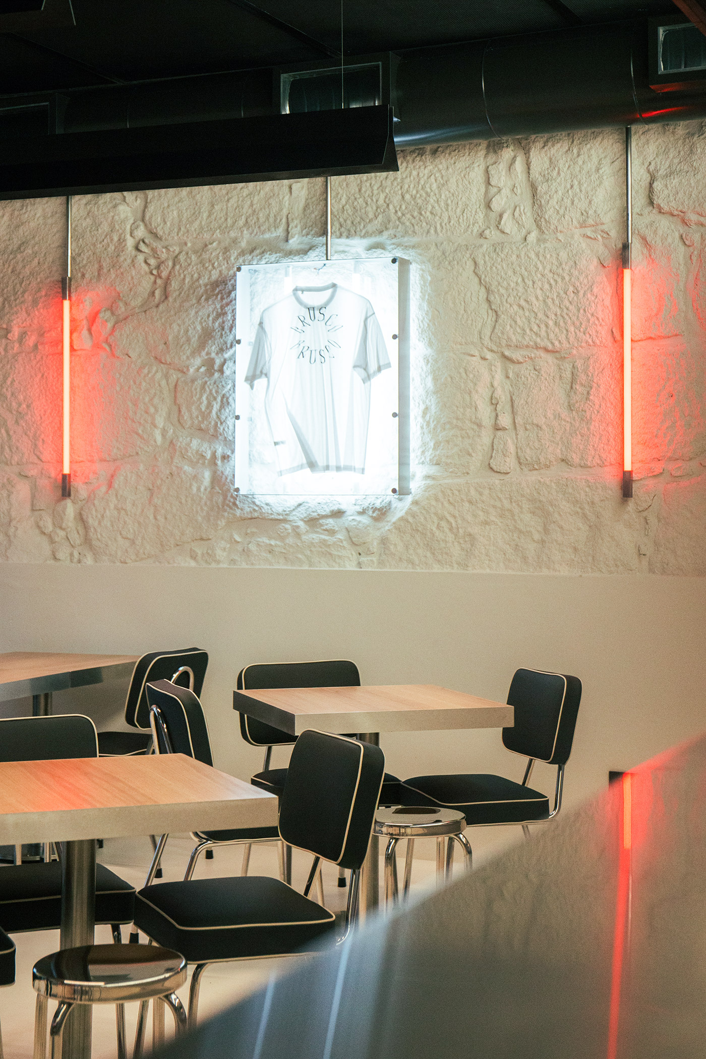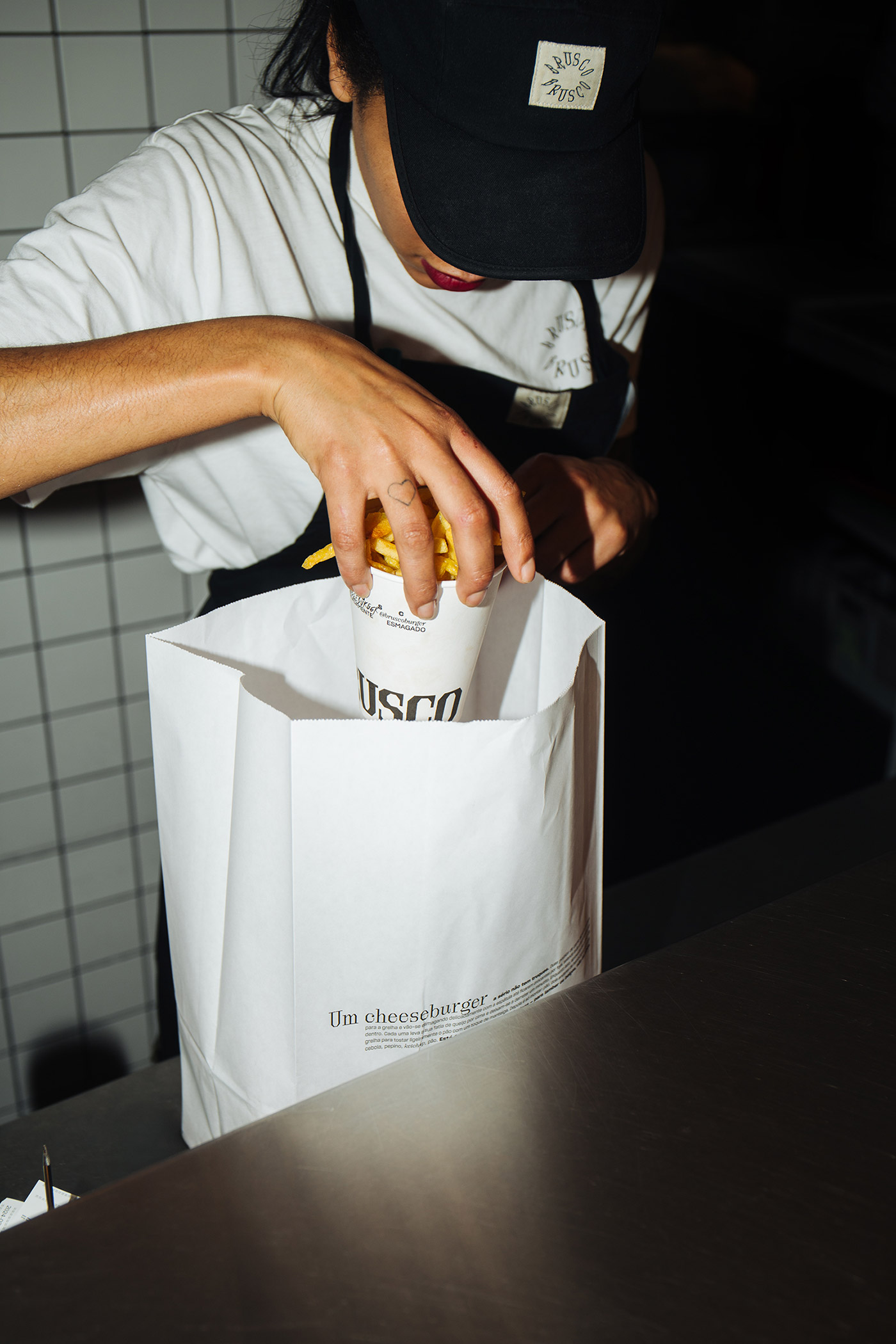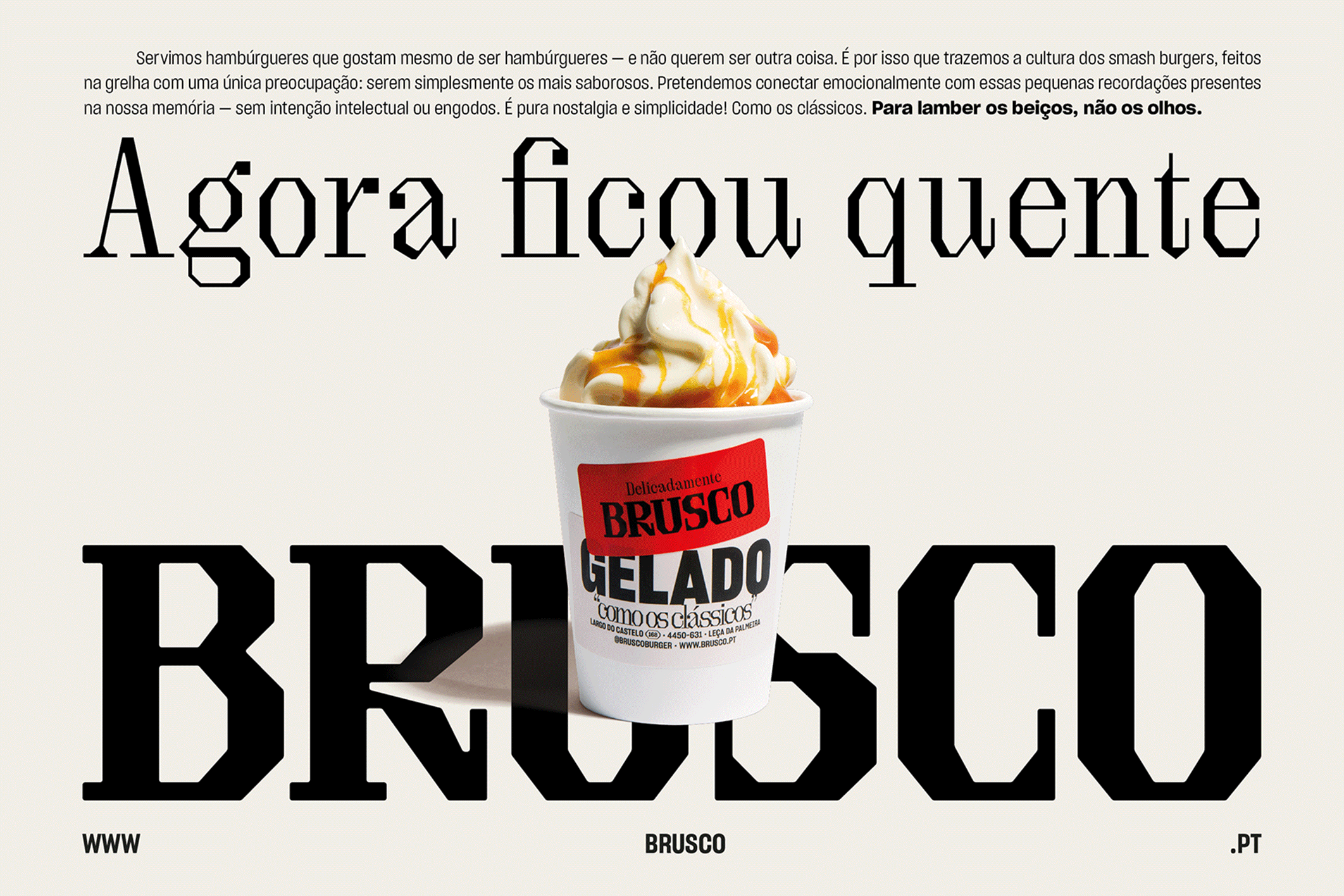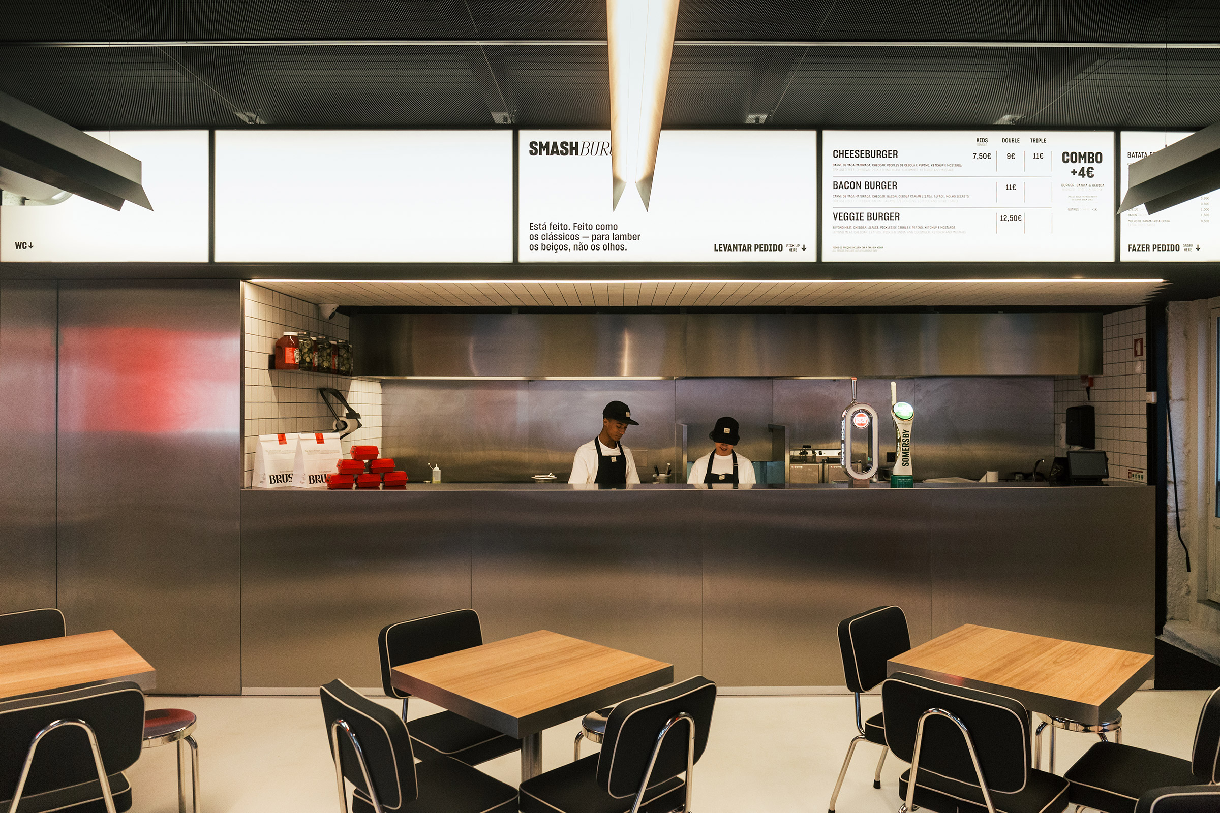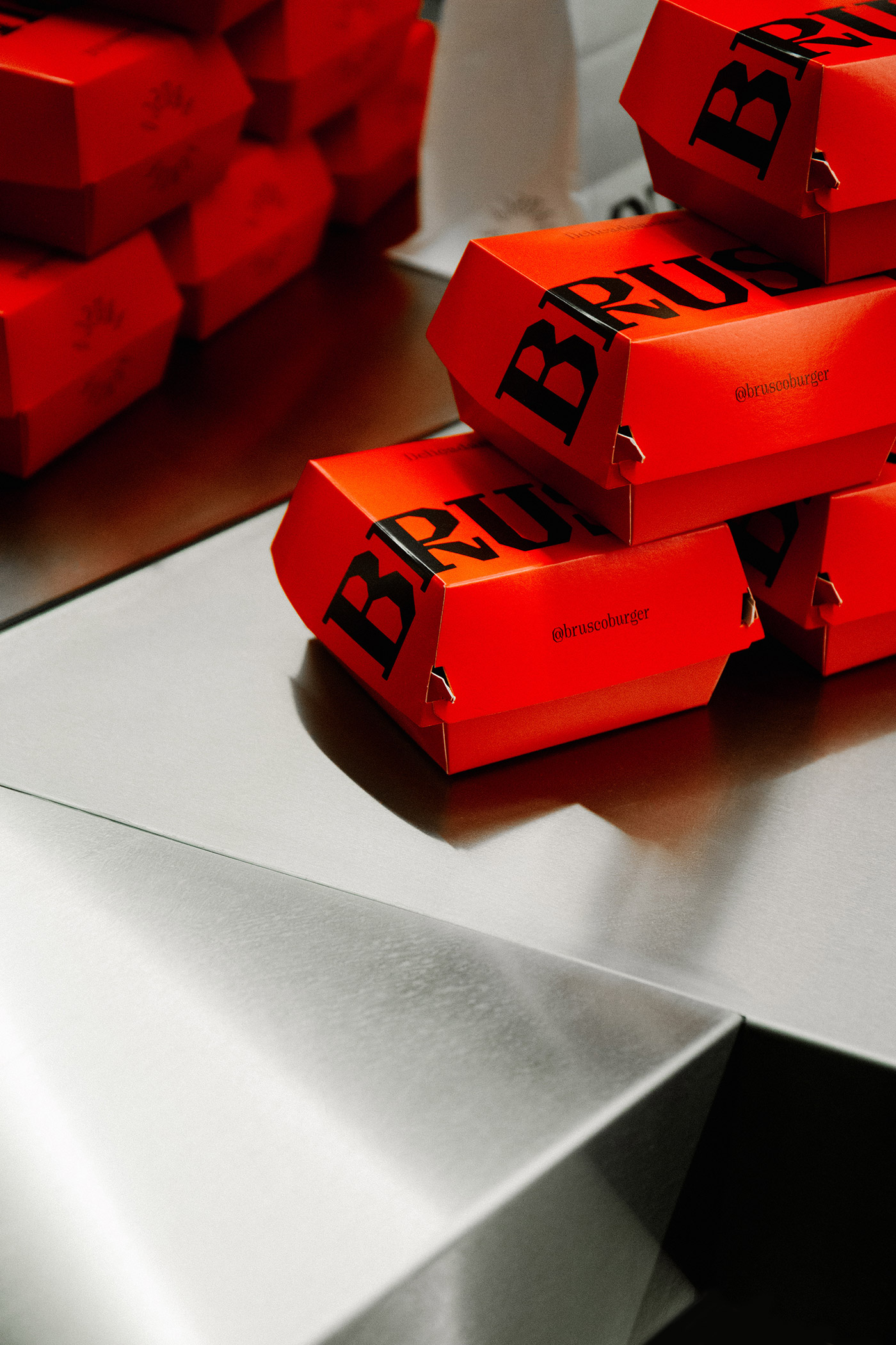 We opted for a type-led visual language — bold, robust and cohesive. With a direct impact on the product, the space and the brand’s communication, it was built using striking graphic elements — such as the boxes and the cups — to serve as a common thread in how the brand connects with its audience. The goal was to create an image rich in nostalgia; a raw, emotional visual language that still feels balanced. The aesthetic mirrors the product itself — the smash burger — with the same spirit in which it hits the griddle: rough, intense, yet disarmingly elegant.