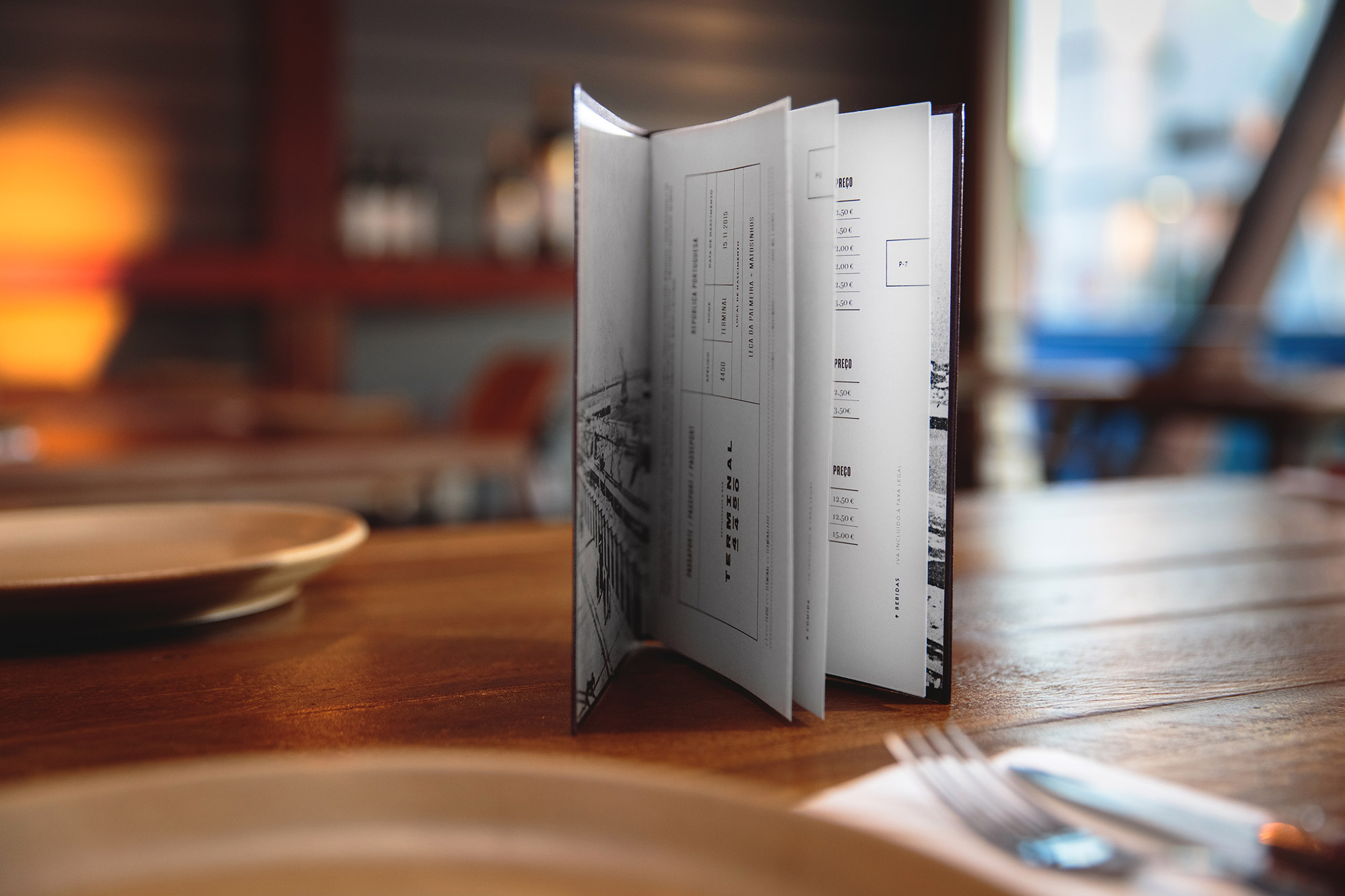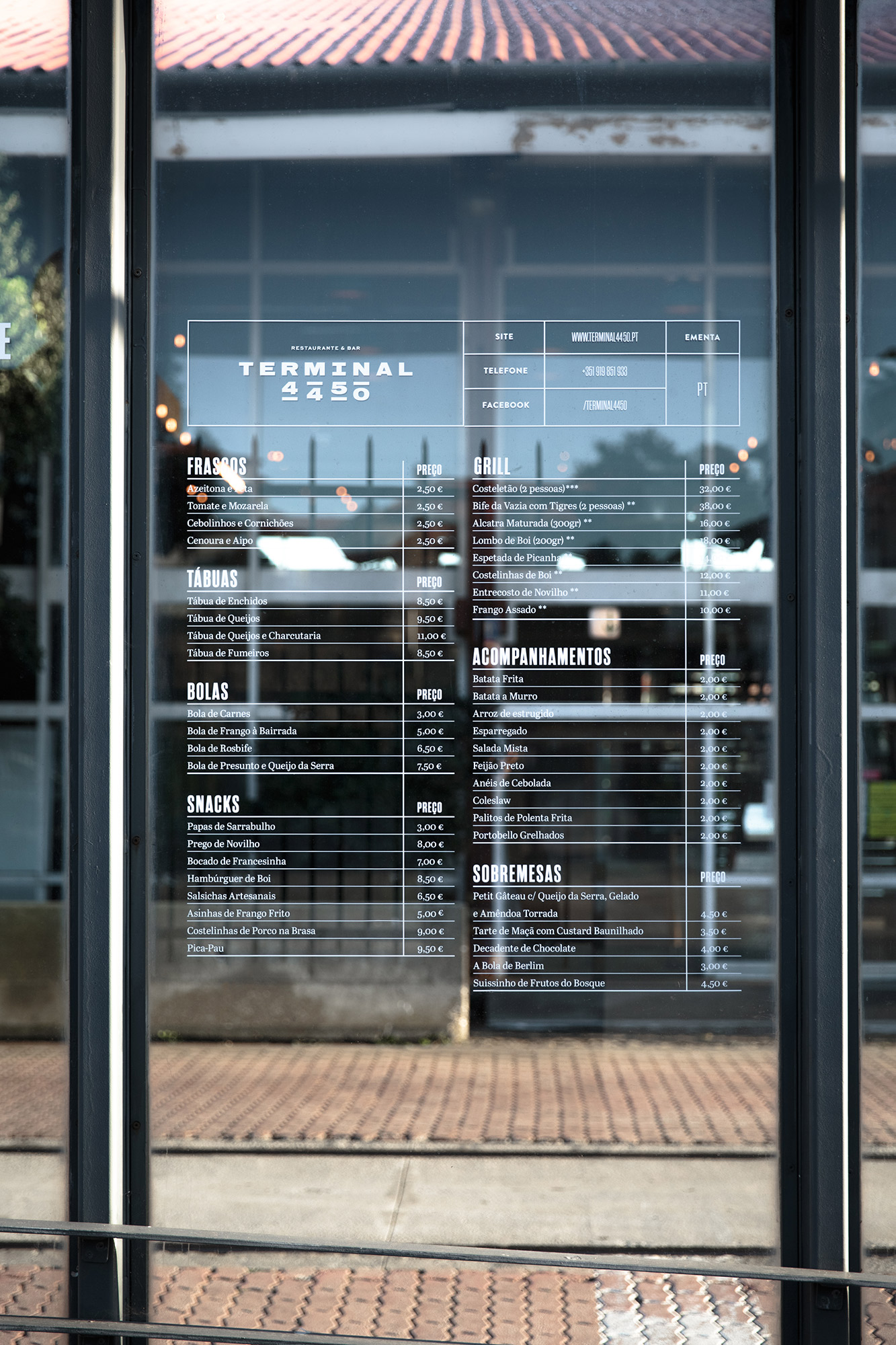 In order to bring the customer to feel a real travel experience, with appropriations of a typical airport environment, the entire graphic identity takes advantage of prominent objects of our travels, from bags to the passport through the structure linking the platform to the airplane. The brand has been crafted with the intent of looking like an exchange of numbers reminiscent of the departure and arrival airport terminal. Inside the space, a generously sized menu coexists with the same purpose, to give the customer the feeling of being in a platform, which awaits for his flight details when, in fact, the information he’ll find is the menu of the Restaurant and Bar.